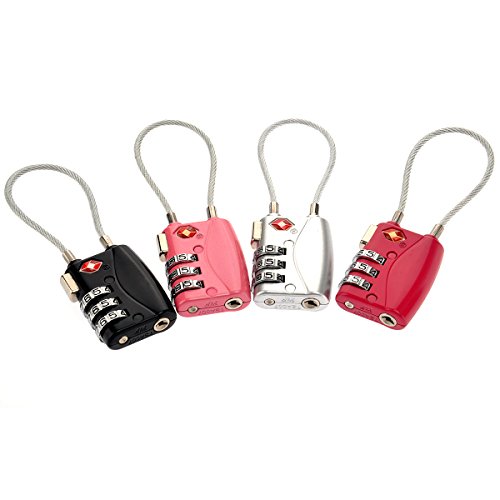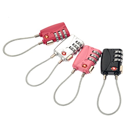 Tinksky 4 Colori TSA Approvato Sicurezza Cavo Bagagli Serrature 3 Cifre Password Serrature Lucchetti a Combinazione (Nero & Argento & Roseo & Rosa)
