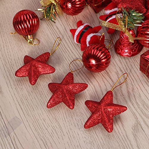 Tinksky Glitter - Decorazioni per albero di Natale, ornamenti da appendere, set da 28 pezzi, campanello, stella, pacco regalo, palline, Babbo Natale, colore rosso