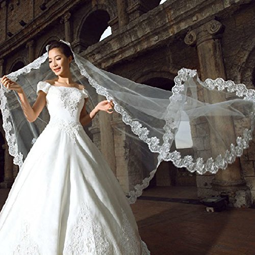 TinkSky Velo da sposa a strato unico, lungo 2,6 m, bordo con ricamo in pizzo, (colore bianco)