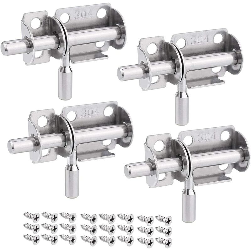 Robusto e resistente alla corrosione - Con la più recente tecnologia di lucidatura e galvanica, questa serratura per porta scorrevole è realizzata in acciaio inossidabile con trattamento superficiale brillante, che la rende resistente all'umidità e alla corrosione. Con un'elevata durezza della struttura, i chiavistelli delle porte hanno una lunga durata senza deformazioni. 【Richiesta】 Le serrature delle porte possono essere utilizzate non solo come serrature per porte interne, ma anche come serrature per porte esterne. Utilizzato come serratura della porta della camera da letto, chiavistello del cancello del giardino, chiavistello della finestra, calcio della tasca, serratura della porta del garage, serratura della porta del bagno, serratura e chiavistello del capannone, serratura della porta del garage, porta del patio con ganci, cancelli del giardino in metallo. 【Buon rapporto qualità-Brix】Riceverai 4 set di chiavistelli e 24 viti gratuite per l'installazione. Le viti sono perfette