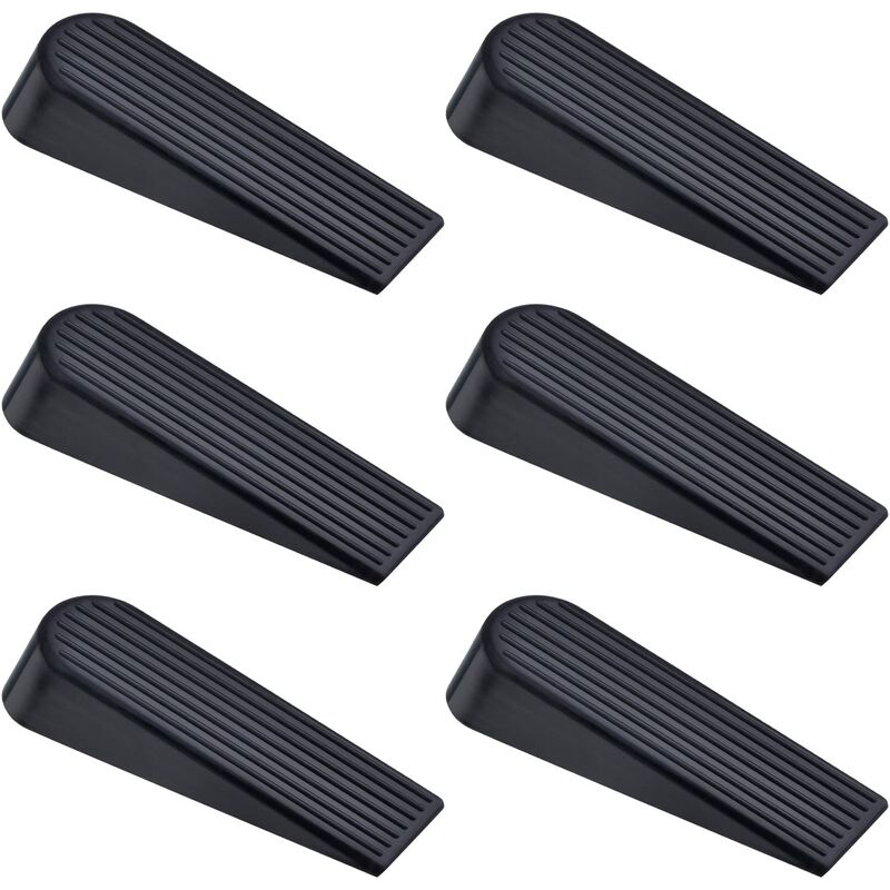 Sono morbidi e resistenti, possono essere applicati a lungo La confezione contiene: set di 6 cunei per porte in gomma nera;