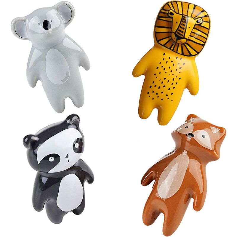 Dimensioni: diametro manopola: 63 mm, diametro parete posteriore: 36 mm, diametro filettatura: 4 mm. Installazione: forniamo i tappi a vite e le viti e rondelle extra. Facile da installare e facile da sostituire. Applicazione: pomelli in ceramica per armadi, cassettiere, mobili per la camera da letto, toelette o mobili da cucina, fino a 15 mm di spessore. Per ulteriori scopi decorativi. Pacchetto: include 4 diverse maniglie per cassetti in stile vintage (volpe, panda, leone, koala) e 4 set di viti.