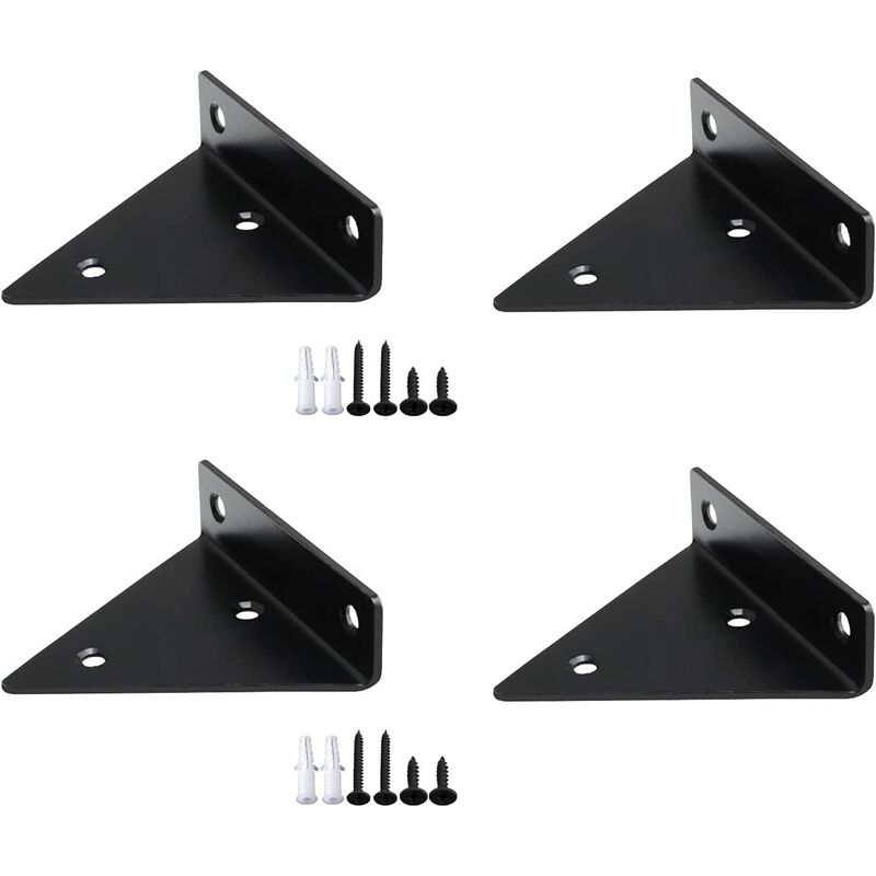 La mensola supporta le dimensioni - Dimensioni complessive del supporto: 100 x 80 x 26 mm / 3,94 x 3,15 x 1 pollice. 4 staffe per mensole mobili nascoste nere, con 8 viti lunghe e 8 viti corte. 【Capacità di carico】La combinazione in due pezzi del telaio angolare in metallo estremamente resistente può supportare oggetti di 20 Kg. Questo telaio angolare in metallo è molto adatto per staffe decorative industriali. 【bel design】: L'aspetto della staffa dello scaffale è triangolare, tutti gli scaffali possono essere appesi, nascosti nella parte inferiore dello scaffale, risparmiando spazio e un design bello e semplice. 【uso multiplo】Adatto per supporti per scaffali, supporti per armadietti, scaffali per mobili, manutenzione di partizioni, per aiutarti a riporre libri, vasi, foto di famiglia e altri piccoli accessori su uno scaffale espositore mobile. 【materiale resistente】Realizzata in ferro di prima qualità che offre durata e resistenza all'usura, consentendoti di mantenerlo al meglio più a