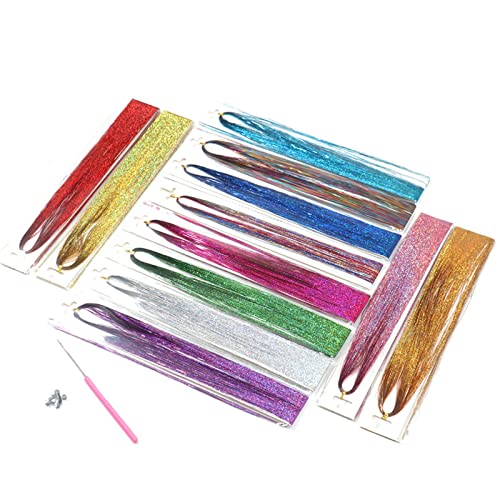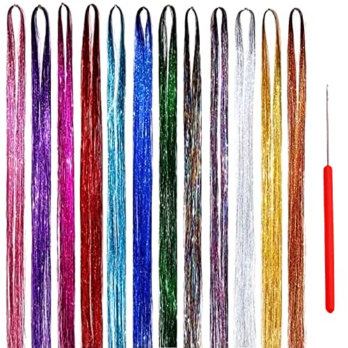 Hair Tinsel 12 Colori Tinsel Capelli Glitter,Fili di Tinsel per Capelli Brillantinati Multicolor Tinsel Hair Kit di Fili di Tinsel Estensioni per Capelli per Ragazze e Donne, Feste e Cosplay 3360