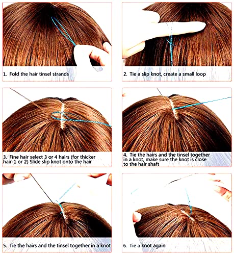 [Facile da usare]: fai un nodo e fissa i capelli di tinsel sui tuoi capelli con gli strumenti nella confezione. i capelli di orpelli possono durare diverse settimane, anche se vengono lavati, asciugati e stirati.