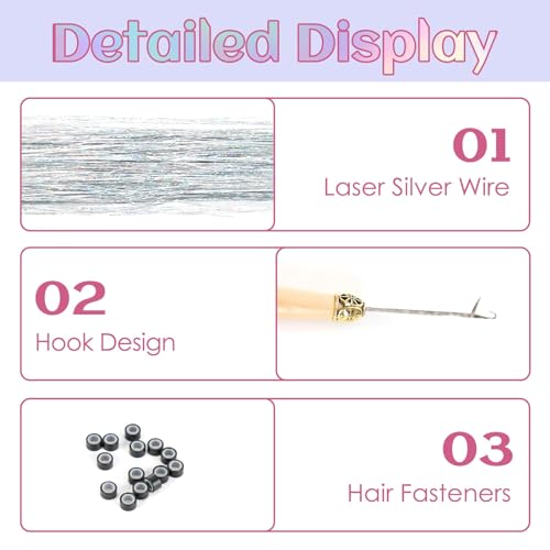 Tinsel Strumento di Estensione Dei Capelli Misti Tinsel Kit Glitter Estensione Dei Capelli per Ragazze Accessori Per Capelli per Cosplay Party Capelli D'argento(argento)