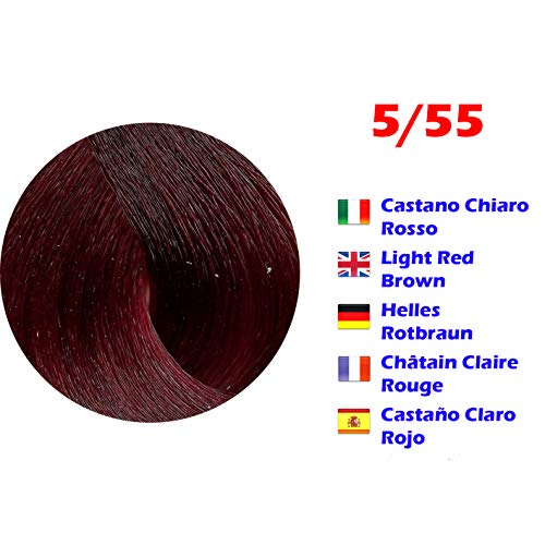 Tinta per Capelli Professionale Colore Castano Chiaro Rosso Extreme Con Ammoniaca 5/55 Permanente 100ml
