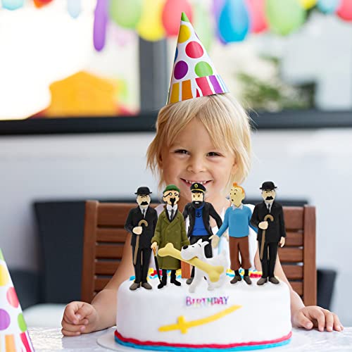 Tintin Mini Figure, 6Pcs Mini Action Figure, Tintin Dolls Decorazioni Cake Topper Mini Figurine Regalo Giocattoli per Bambini Decorazioni per Torte di Compleann