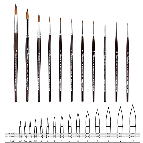 TINTORETTO Serie 334 Pennelli in Martora Kolinsky per Acquarelli, Acquerelli - Manico Corto - Punta Tonda (N°10/0)