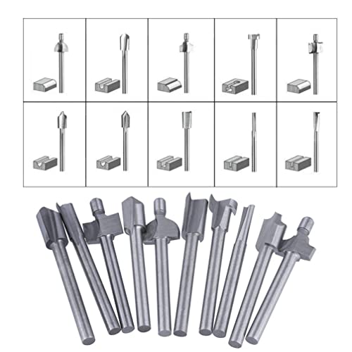 通用 Tinyisoon 10Pcs HSS frese Rotative, 3 mm (1/8") Set di punte per trapano, incisione in legno Dremel Accessori per legno PCV Plastica Acrilico
