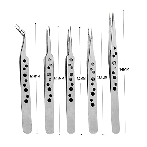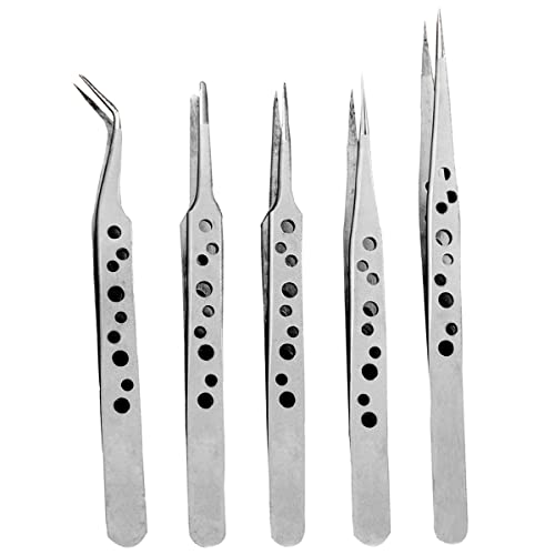 通用 Tinyisoon, Set di pinzette professionali con punte dritte e curve, in acciaio inossidabile, per elettronica, lavori di riparazione fai da te, 5 pezzi