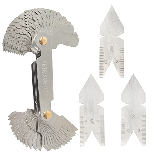 [Misurazione precisa] ✿ Questo calibro per passo filettatura può essere utilizzato per misurare la filettatura e la filettatura esterna, i manometri centrali estremamente pratici di 60 e 55 gradi utilizzati per rettificare e regolare gli strumenti di taglio a vite.