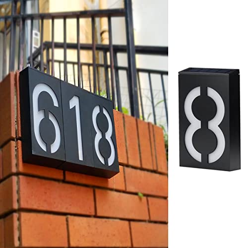 TINYOUTH Numero civico solare - Numero 8, targa per porta da parete, 6 LED con numeri civici con luci, impermeabile IP55 per casa fai da te