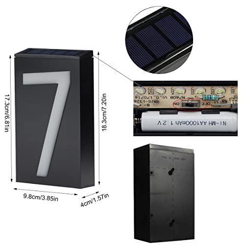 TINYOUTH Numero civico solare - Numero 7, targa per porta da parete, 6 LED con numeri civici con luci, impermeabile IP55 per casa fai da te