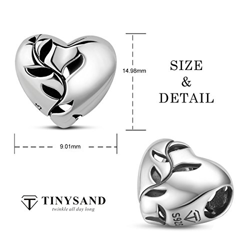 TinySand Bead Charms Forma di Cuore Amicizia in Argento Sterling 925 per Pandora Stile Gioiello Bracciale