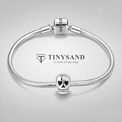 TinySand Bead Charms Teschio Disegno Occhio di Cuore in Argento Puro 925 Zirconia Cubica Brillante, Adatto per Braccialetti di Stile Pandora