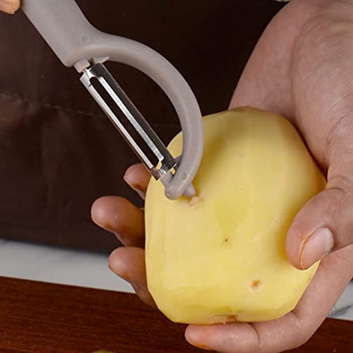 Tinyuet Set di 2 pelapatate da cucina, pelapatate verticali in acciaio inox, adatto per pelare tutte le verdure e frutta, grigio e verde