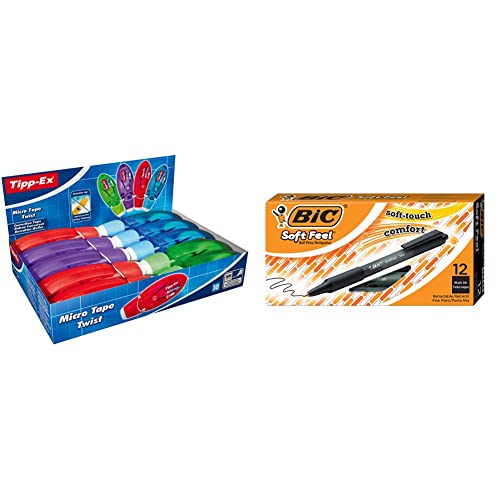 Tipp-Ex Correttore a Nastro, Micro Tape Twist, Fornitura Cancelleria Scuola e Ufficio, Bianchetto a Nastro, Confezione da 10 Unità & Soft FeelClic Grip Penna a Sfera, a Scatto