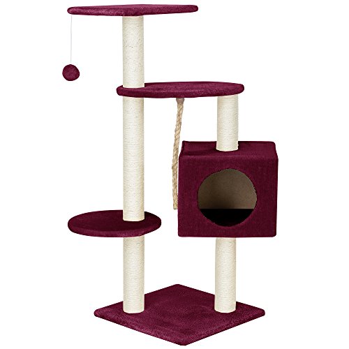 En.casa - Tiragraffi per catti (Circa 40 x 40 x 113 cm) (Rosso Scuro) Grotta per accucciarsi/Piattaforma visuale/Sisal/con Tanti Giochi - e possibilità di accucciarsi