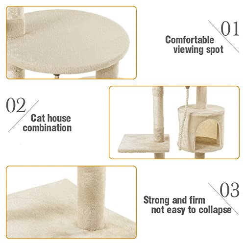【Praticità】Questa casetta per gatti ha un'altezza di 112 cm, con piattaforme ovali 40 x 30 cm, piattaforme quadrate 30 x 25 cm e 40 x 40 cm sul fondo, che è adatto per i gatti a saltare e giocare liberamente tra le 3 piattaforme, e la casetta per gatti può anche essere utilizzata per i gatti a dormire, quindi è adatto a qualsiasi stanza. Un albero per gatti che unisce divertimento e tranquillità senza dover acquistare una lettiera aggiuntiva.