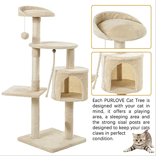 Tiragraffi per Gatti Albero per Gatti Altezza 112 cm, 3 Piattaforme, 1 Palla Di Peluche, 1 Corda in Sisal e 1 Casetta per Giocare e Riposare, Beige Inventario in Germania