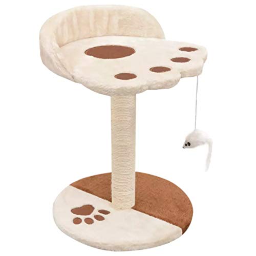 Tiragraffi per gatti altezza 40 cm, albero per gatti con giocattolo da appendere al topolino, colore beige e marrone