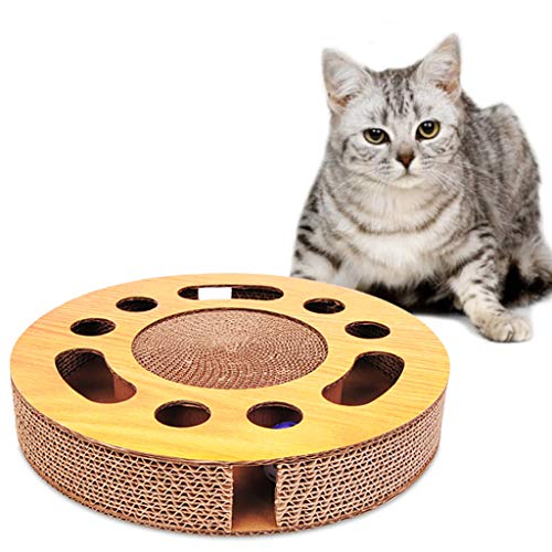 Only y y y - Tiragraffi per gatti in cartone ondulato per gatti, in cartone ondulato, design rotondo con catnip non caro, giocattolo da tavola per gatti con campana