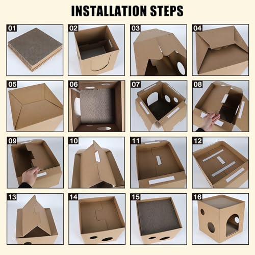 Tiragraffi per Gatti, Casetta per Gatti in Cartone con Blocchi Tiragraffi Cuccia Gatti per Interni (30x30x30cm)