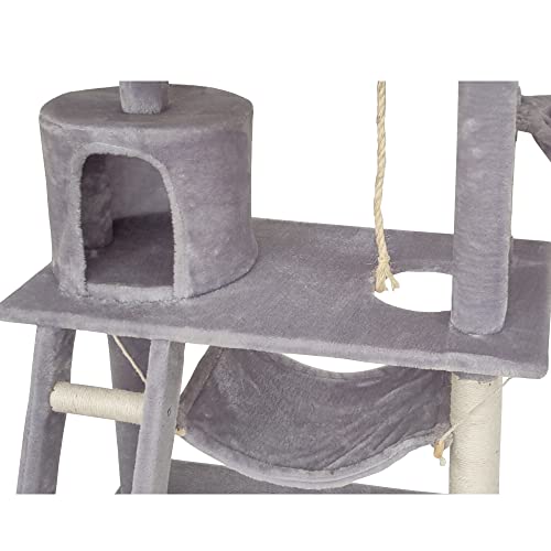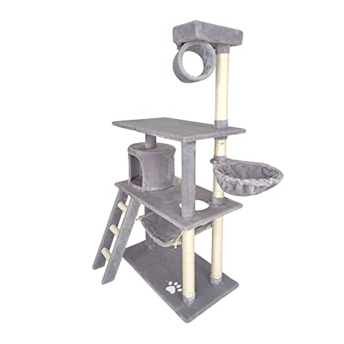 TIRAGRAFFI PER GATTI ALTO 141 CM. GIOCO COMPLETO PARCO GIOCHI CUCCIA GATTO NUOVO GRAFFIATOIO SISAL ALBERO CUCCE TIRA GRAFFIO PALESTRA - Grigio