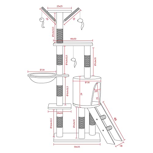 Tiragraffi Gatto albero 138cm con Cuccia per Gatti Albero Parco giochi gioco tira graffi per Gatto colore Grigio - AQPET