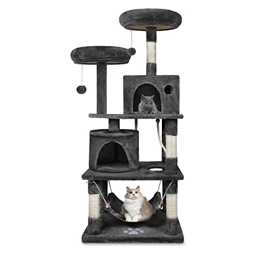 LZQ Tiragraffi in sisal, albero tiragraffi per gatti con cuccia per gatti, cuccia per gatti, cuccia di altezza 145 cm, colore grigio, tipo B