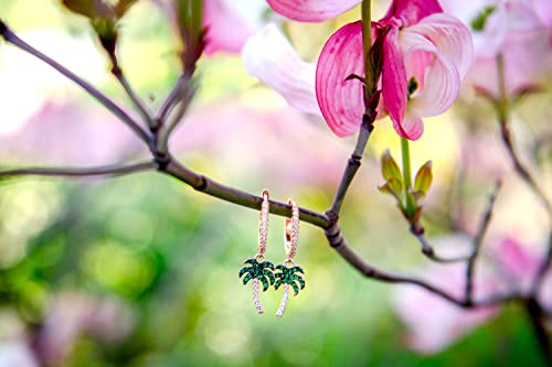 Tiramisu | Orecchini Palme/Zirconi | Gioiello Piccolo per Bambina | 925 Argento Sterling Placcato Oro Rosa | Colore Verde/Bianco | Cerchio Sottile | Regalo Elegante |Senza Nichel |2,1 cm (Palme Verdi)
