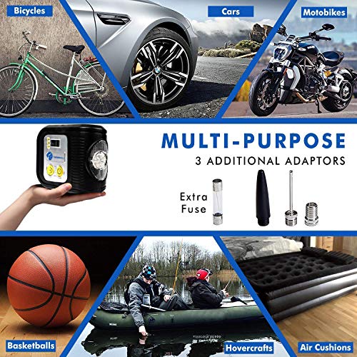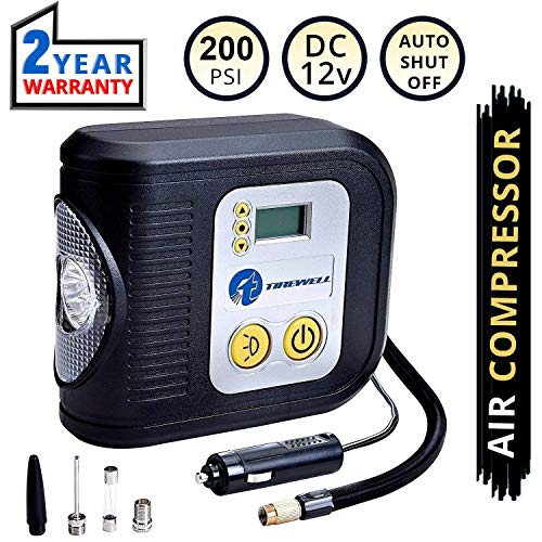 TIREWELL Gonfiatore per Pneumatici Digitale 12V - Compressore d'Aria Portatile, Pompa Metallica Automatica con Luce a LED e 3 ugelli