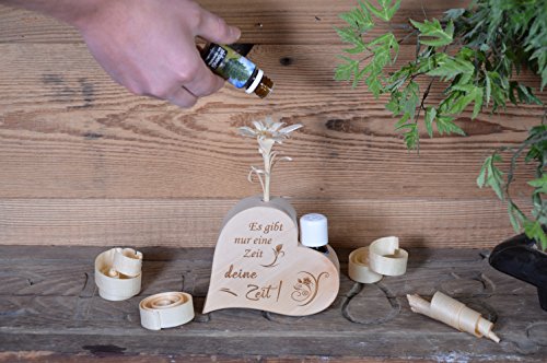Sagl.Tirol Holzmanufaktur - Set di profumo di pino cembro a forma di cuore (c'è solo un tempo per il tuo tempo + olio di cembro biologico (10 ml)