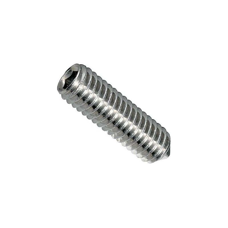 Viti grani senza testa inox a2 m4 x 10 mm - a punta conica, esagono incassato. per applicazione su materiali adatti alla penetrazione della punta per serrare con una brugola, nelle lavorazioni meccaniche, nel fissaggio di maniglie, infissi metallici, zanzariere. a norme en iso 3506-3:2010-04, en iso 3506-3:2009 (e), iso 4027, din914. classe acciaio inox a2. - inox tirrenica