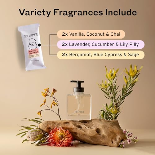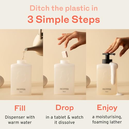 Elimina i rifiuti di plastica: migliora la tua casa con i saponi per le mani efci, idratanti e zero sprechi di Tirty. Ogni compressa è avvolta in un involucro compostabile al 100% e si dissolve nell'acqua del rubinetto per formare 250 ml di sapone schiumoso per le mani. Varietà di fragranze incluse sono 3 x cocco e vaniglia, 3 x lavanda e aloe, 3 x mandarino e rosa, e 3 x limone e Makrut. Compatibile solo con distributori di sapone schiumogeno.