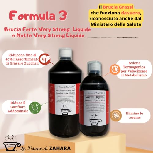 Le Tisane di Zahara - Set Versione Liquida Formula 3 Very Strong con Termogen, Kit Potenziato ad Effetto Drenante
