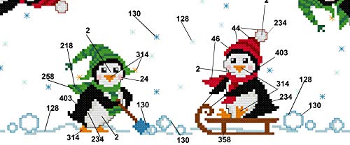 Tischdeckenshop24 Set da Ricamo Pinguini, Set Completo per tovaglia da ricamare a Punto Croce con Disegno prestampato, Set da Ricamo Invernale, Adatto all'Avvento e al Natale