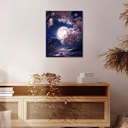 TISHIRON Paesaggio Dipingere con i numeri, per adulti, bambini, principianti, adulti, pittura con i numeri, fai da te, luna, fiori, pittura a olio, decorazione della stanza per ragazze, 16 x 20
