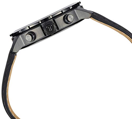 Questo orologio da uomo della collezione Quickster presenta un cinturino in pelle nera e un quadrante nero cronografo