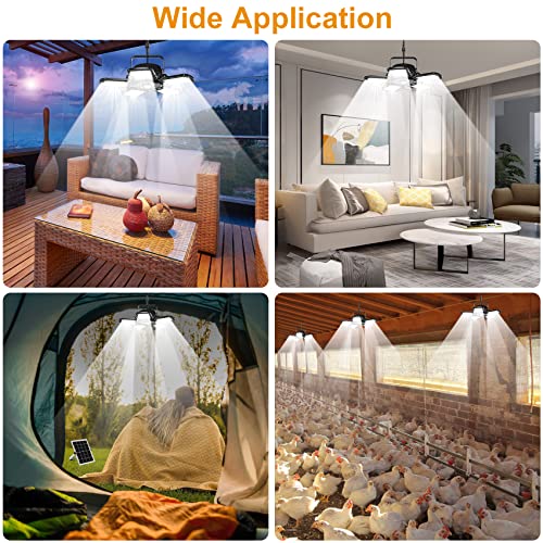5 angoli di luminosità regolabili: la nostra lampada a sospensione solare ha 128 LED super luminosi integrati e la luminosità massima può raggiungere i 1200 lm. Ogni foglia può essere regolata di 120°, in modo da poter regolare l'angolo per guidare la luce dove ne avete bisogno. Il pannello solare supporta una regolazione di rotazione a 360°. Scegliere l'angolo giusto per installare il pannello solare in un luogo soleggiato.