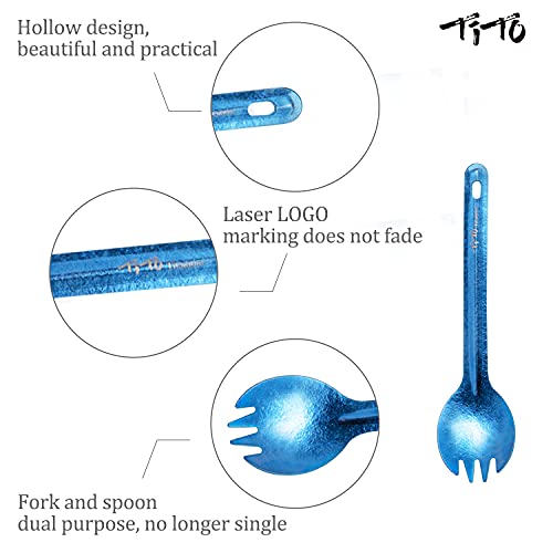 TiTo Titanium Cucchiaio Forchetta Ttanio Outdooor Ultralight Portatile Picnicware Riutilizzabili Posate Spork Cucchiaio Forchetta con Borsa per Camping Trekking Picnic(Cucchiaio Blu)