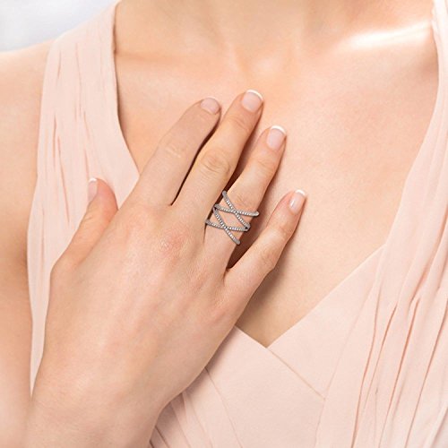 Titaniumcentral Anello nuziale da donna, in argento sterling 925 e zirconia cubica, a fascia, design incrociato