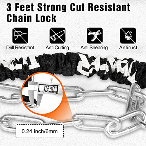 Serratura per bici ad alta sicurezza: con maglie a catena resistenti di sicurezza spesse 6 mm, la nostra serratura a catena per bici è realizzata in acciaio resistente noto per la sua resistenza al taglio. La lubrificazione regolare per il foro di blocco e il buco della serratura prolungherà il tempo di servizio della serratura.