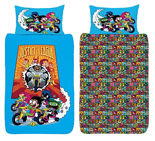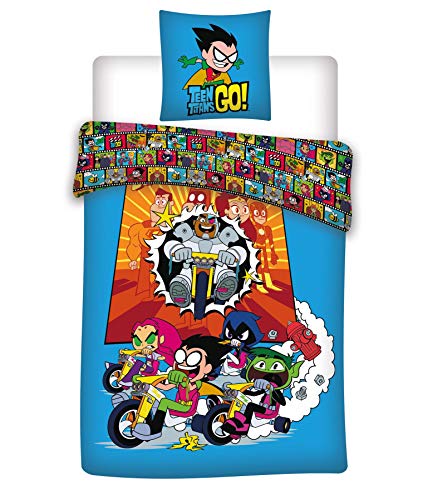 Teen Titans Go - Set copripiumino singolo reversibile ufficiale - Robin, Beast Boy, Starfire, Raven & Cyborg - in policotone