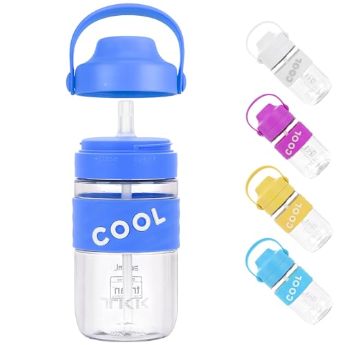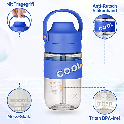 TITIROBA TKK - Borraccia per bambini con coperchio a tenuta stagna e cannucce, in Tritan, senza BPA, a prova di perdite, colore blu, 500 ml