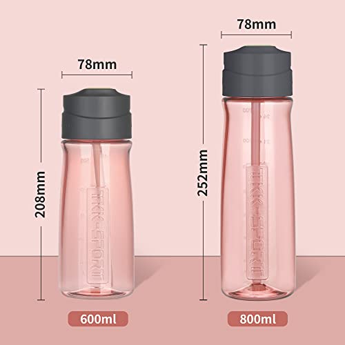 TITIROBA TKK - Borraccia con cannuccia, 500 ml, a prova di perdite, per bambini, in Tritan, per asili, scuole, sport, rosa 1009