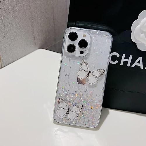 Tivenfezk Nadoli Cover Trasparente Glitter per iPhone 15,Farfalla Design Brillantini Stella Custodia Silicone Case Bumper per Donna Ragazze,Chiaro