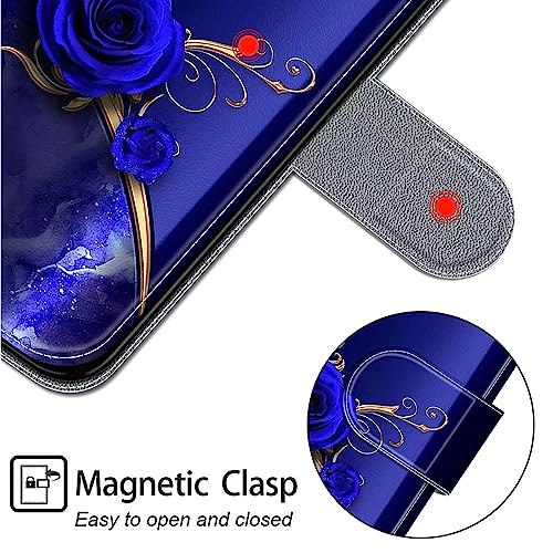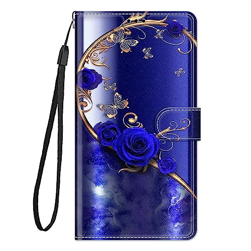 Tivenfezk Nadoli Custodia PU Pelle per Xiaomi Redmi Note 10 5G,Colorato Dipinto Blu Rose Fiore Cinturino da Polso Porta Carte Magnetico Portafoglio Protettiva Cover