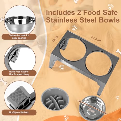 Due ciotole in acciaio inossidabile addensate con maggiore capacità: viene fornito con un totale di due ciotole in acciaio inossidabile e un alimentatore lento per un facile cambio. Dimensioni ciotola per animali domestici: diametro: 20,32 cm, altezza: 6,6 cm, diametro inferiore: 12,7 cm, capacità: 1000 ml (per acqua), 538 g (per cibo per cani), perfetto per crocchette secche, cibo umido, dolcetti o acqua. Sono sicuri per una facile pulizia, puoi mettere l'intera ciotola in lavastoviglie.